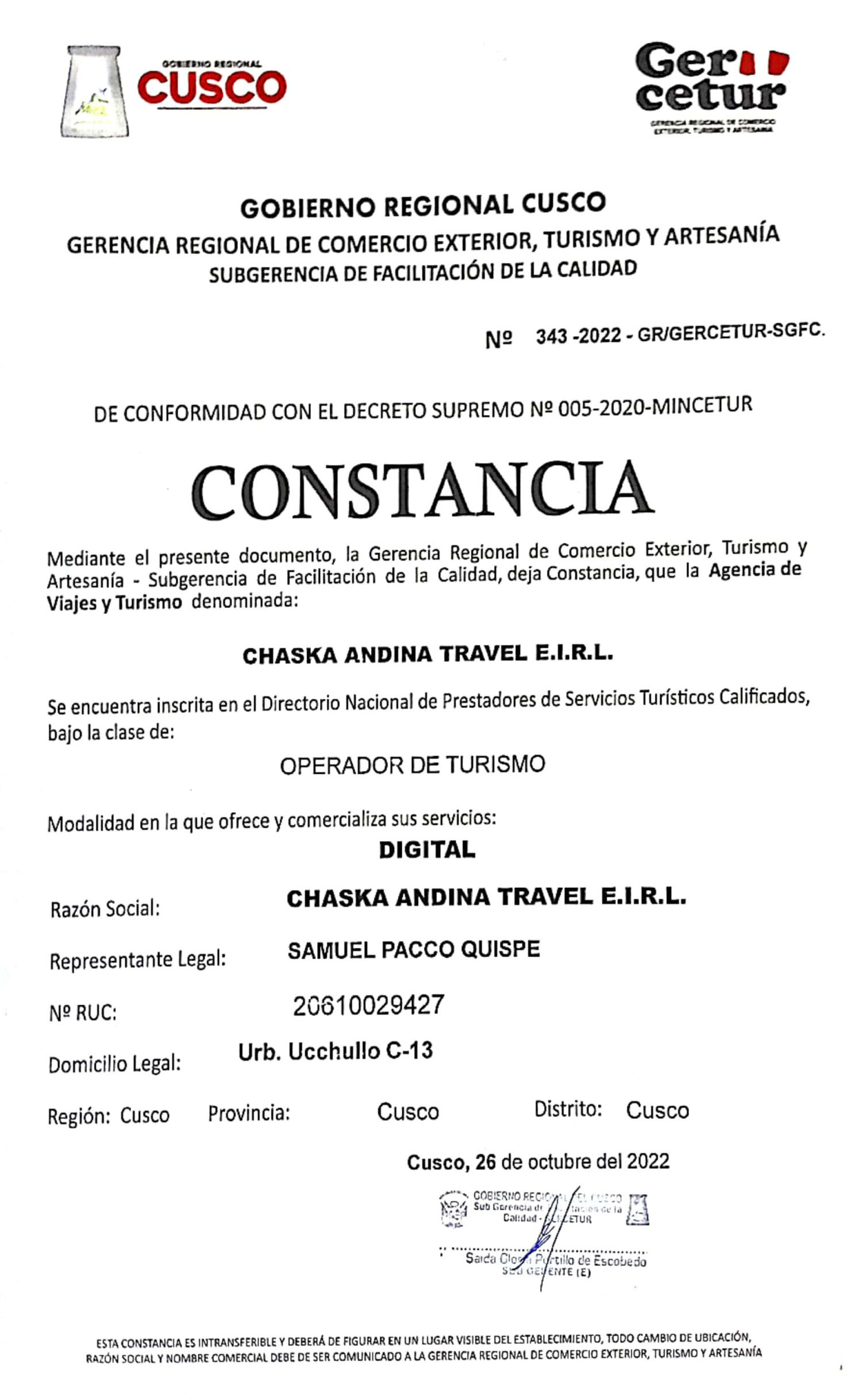 Nuestra fortaleza está en el compromiso y profesionalismo que definen cada uno de nuestros servicios, diseñados para ofrecerte una auténtica inmersión cultural y de exploración. Cada paquete de viaje representa para nosotros un compromiso y una fuente de inspiración. Confía en nosotros para hacer de tu aventura en Perú un recuerdo inolvidable, con la calidad y dedicación que mereces.